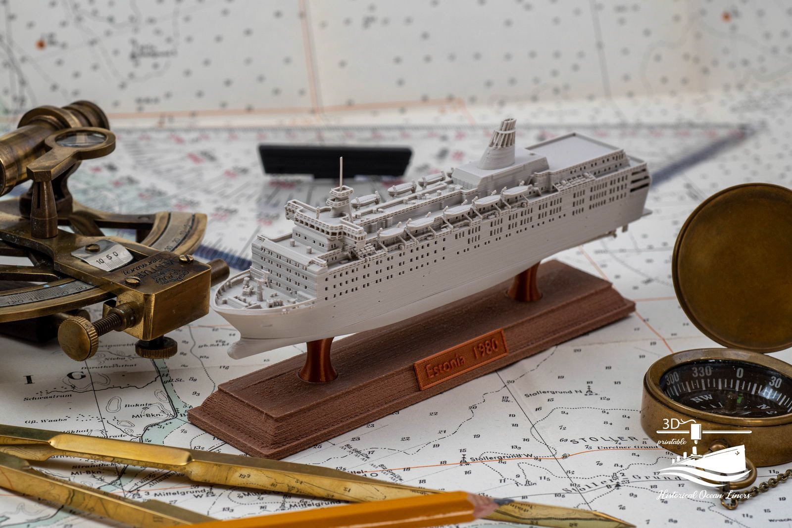 An overview of my 1:1000 3D printed model of historical Ocean Liners