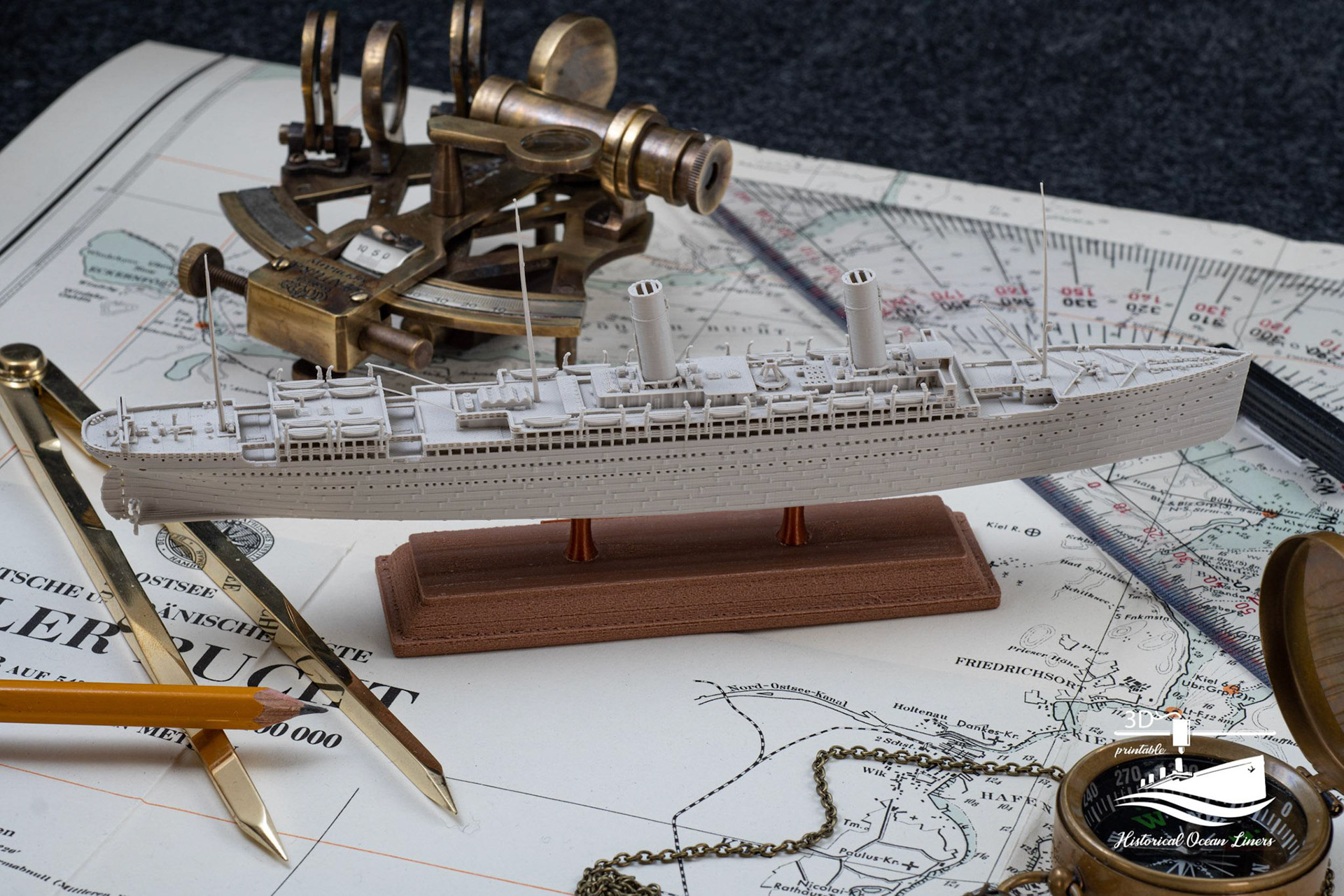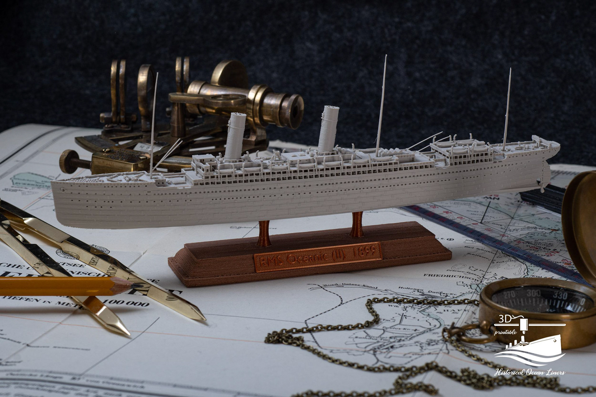 An overview of my 1:1000 3D printed model of historical Ocean Liners