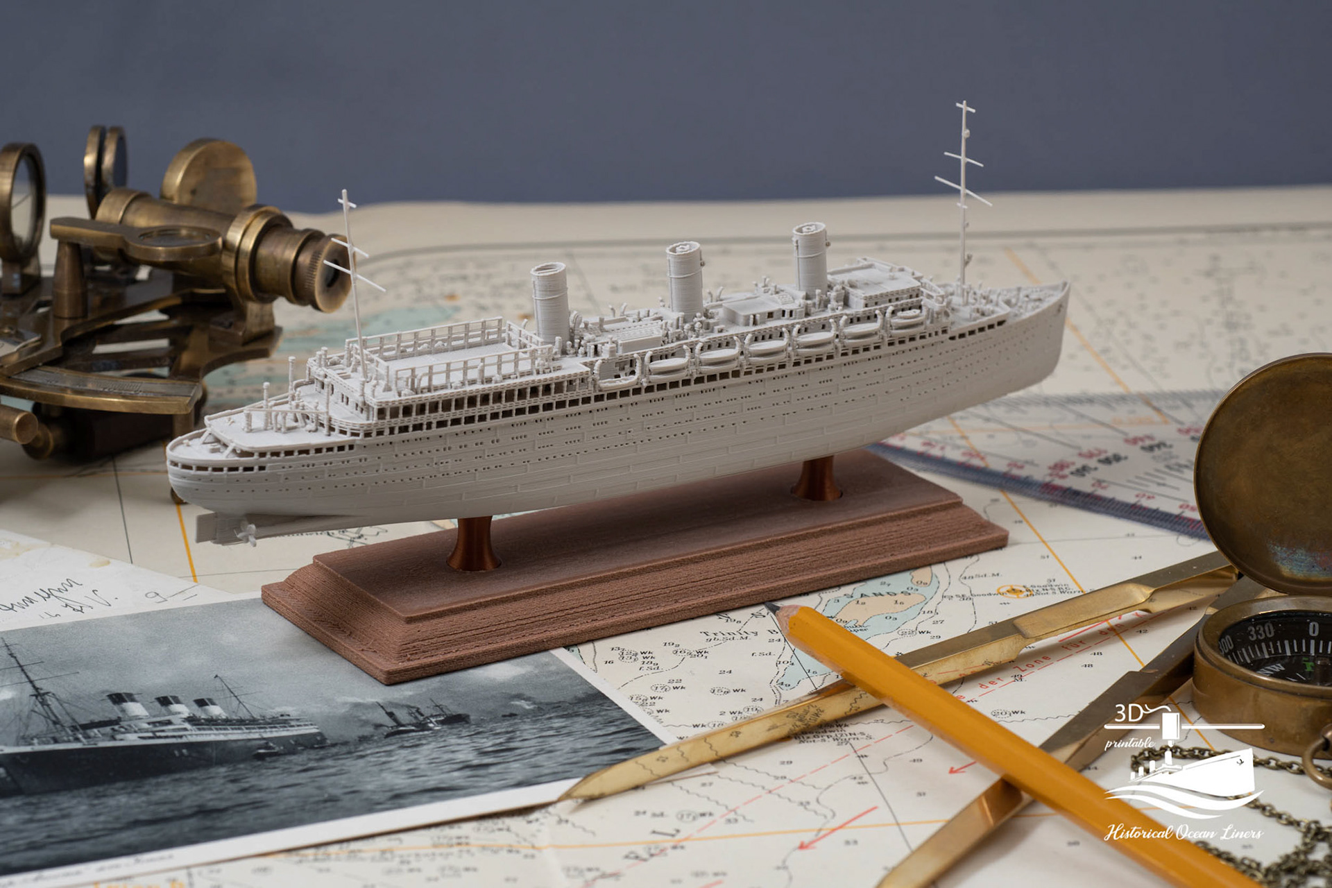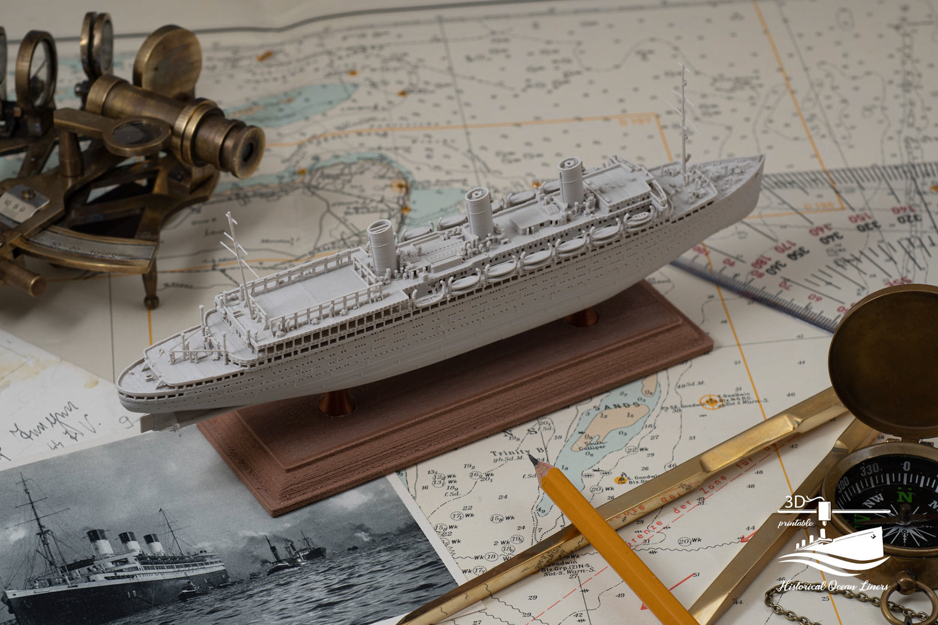 An overview of my 1:1000 3D printed model of historical Ocean Liners