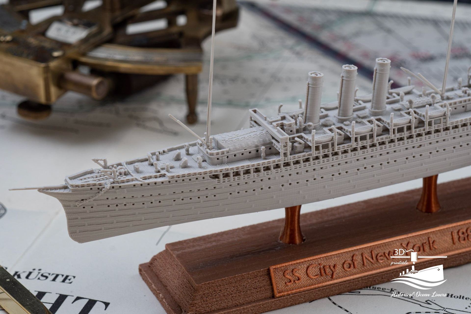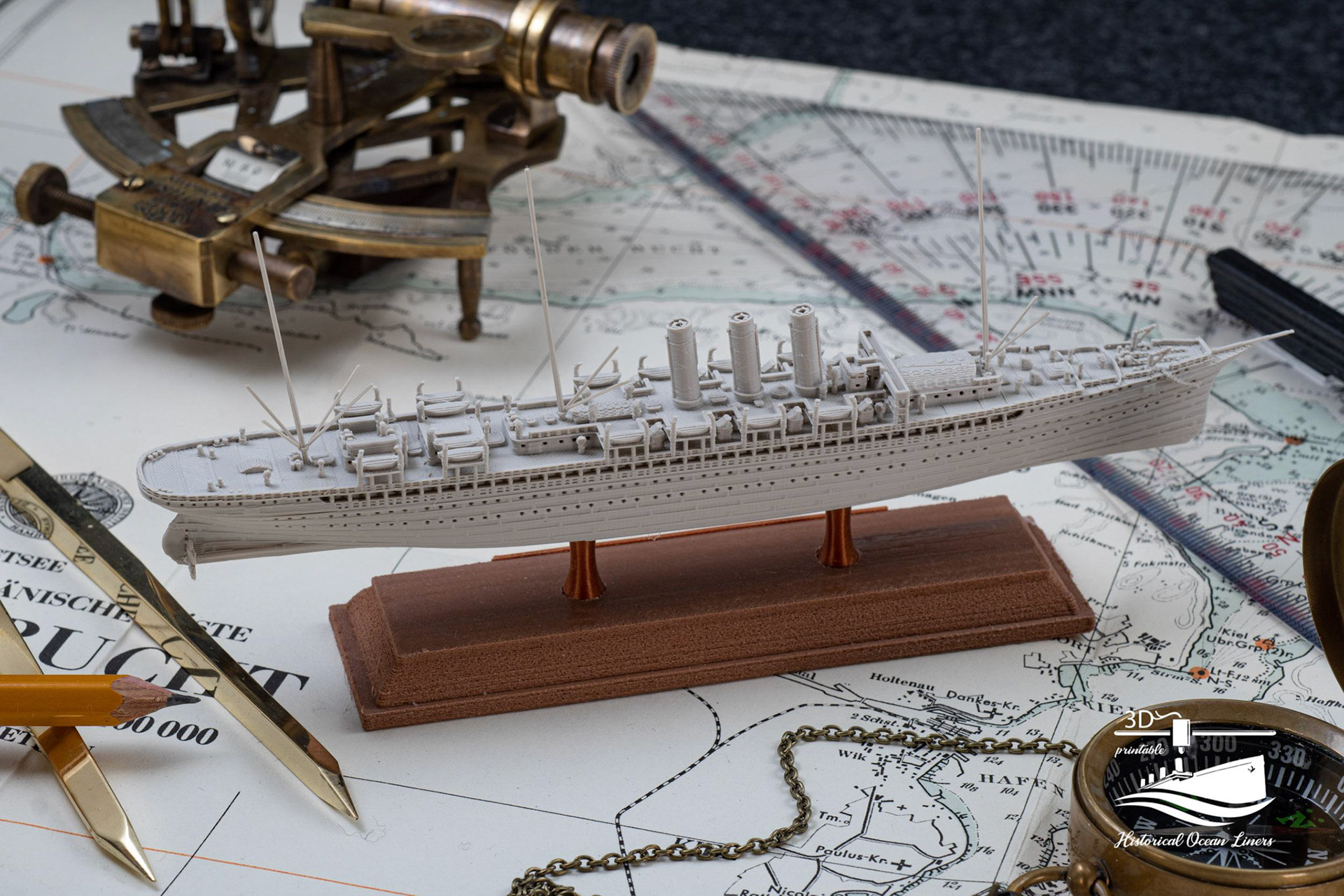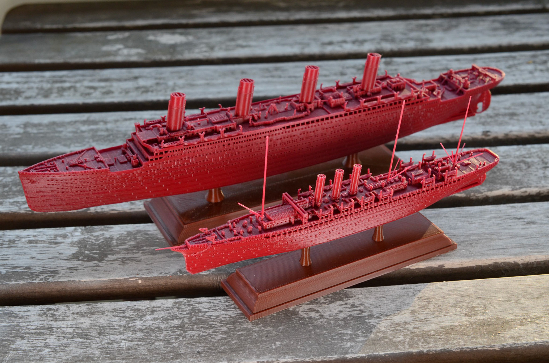 An overview of my 1:1000 3D printed model of historical Ocean Liners