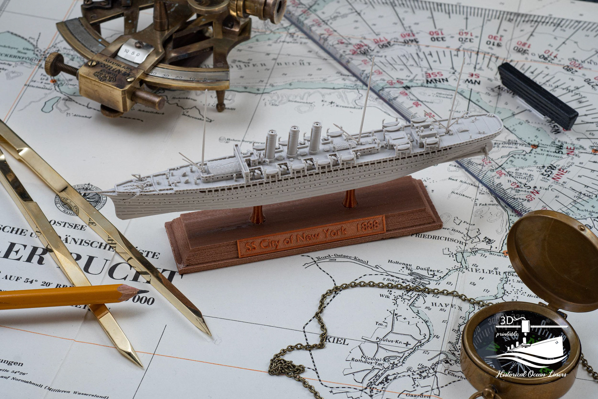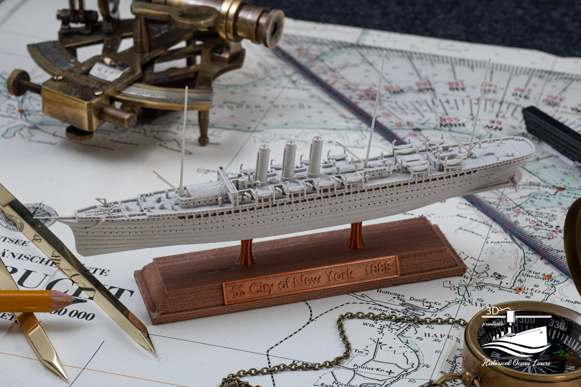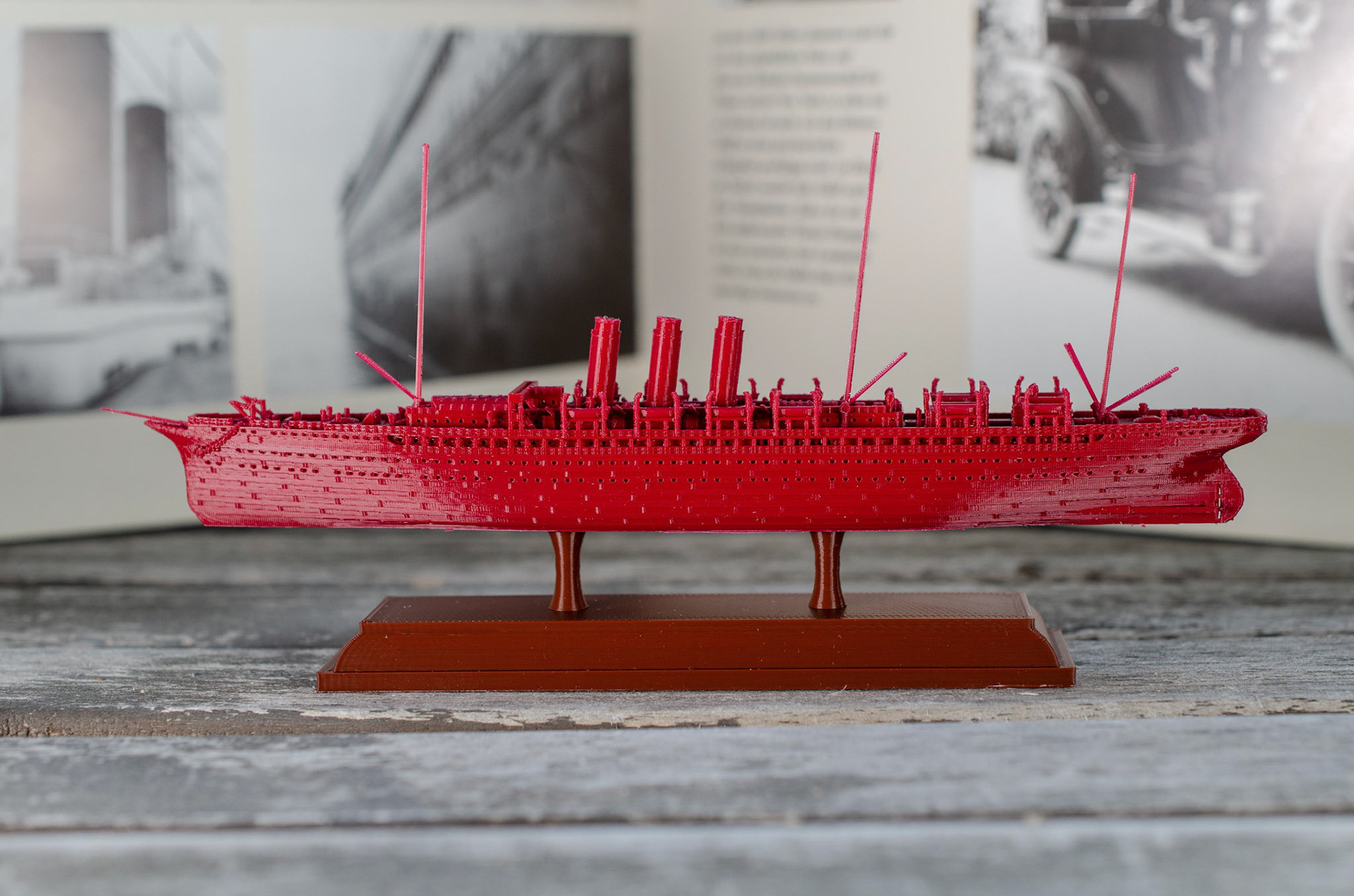 An overview of my 1:1000 3D printed model of historical Ocean Liners