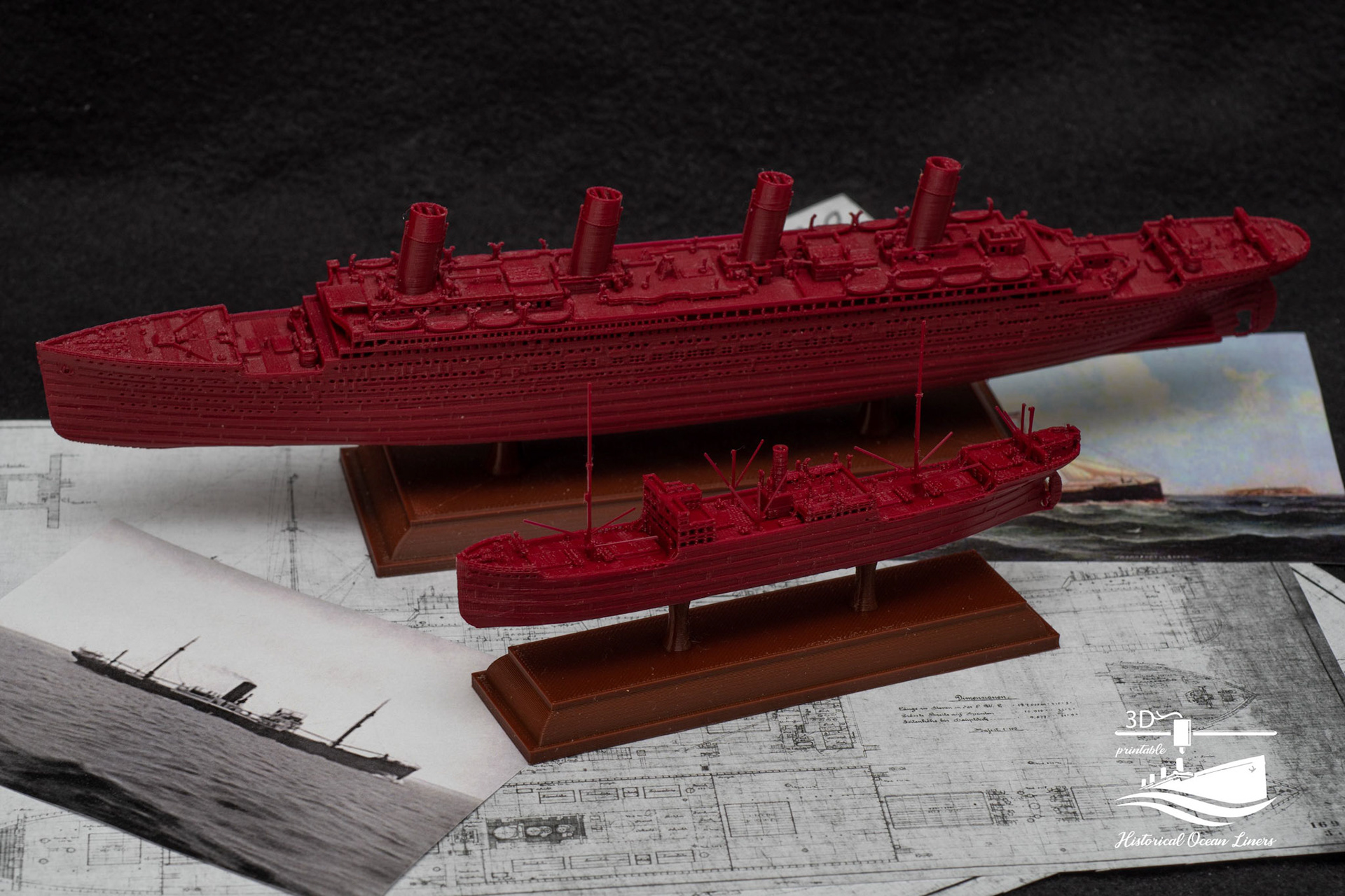 An overview of my 1:1000 3D printed model of historical Ocean Liners