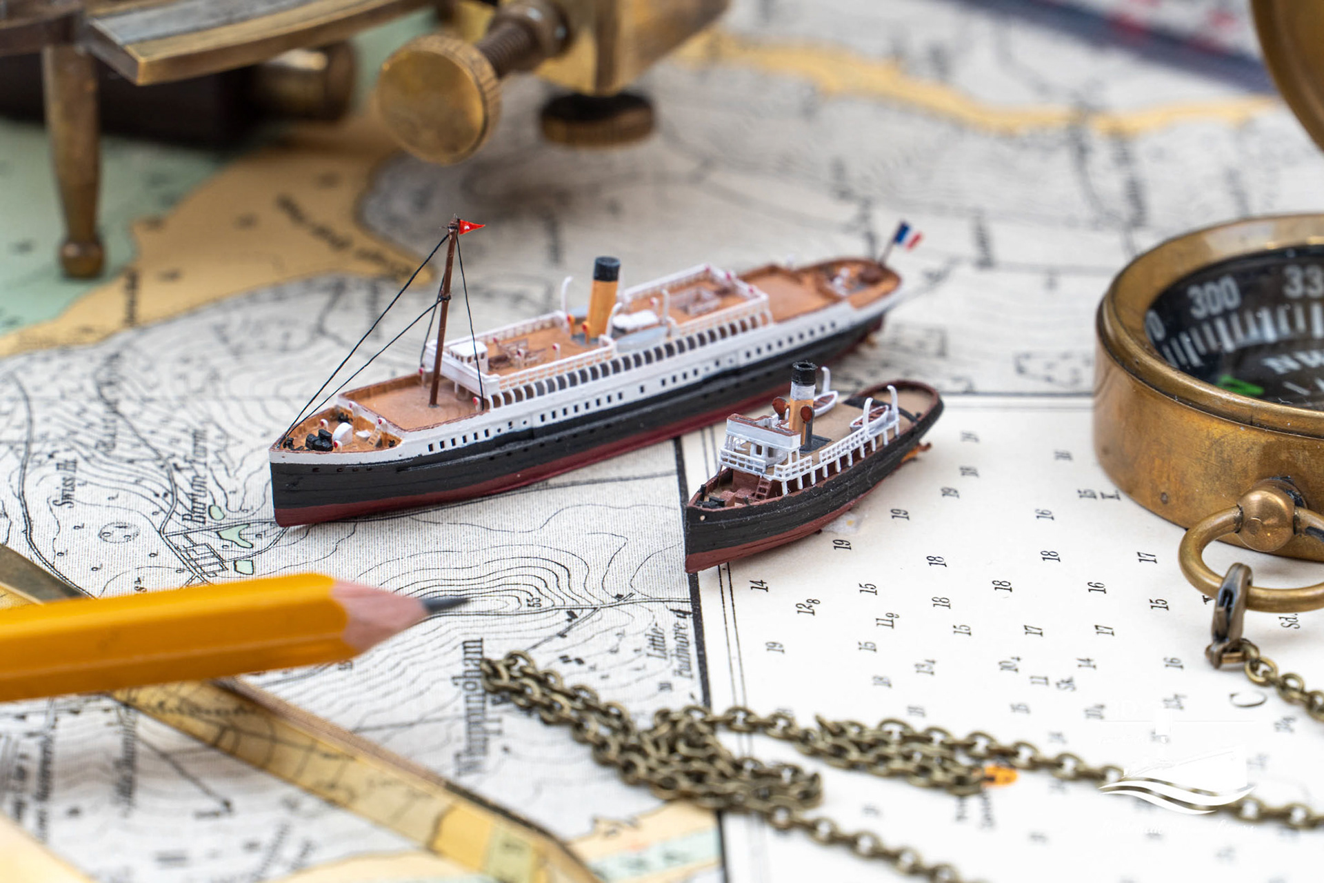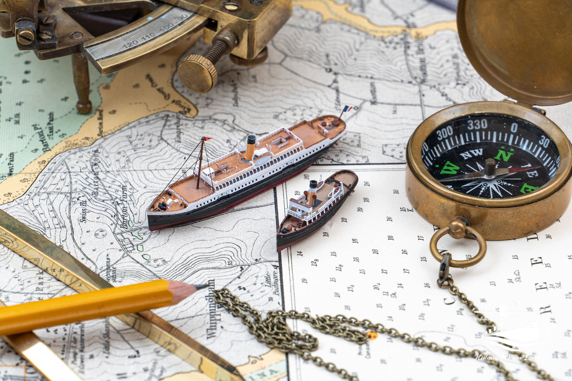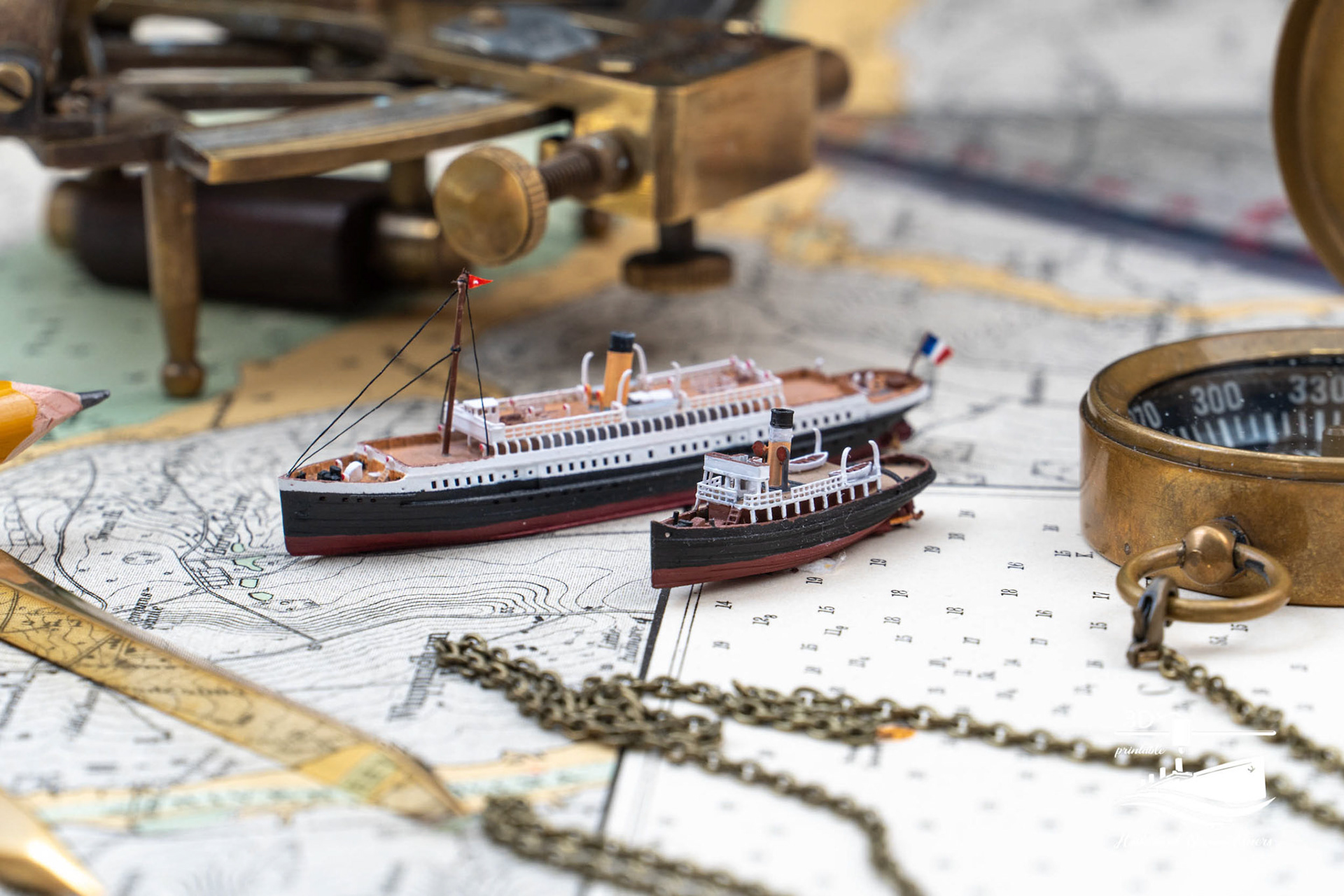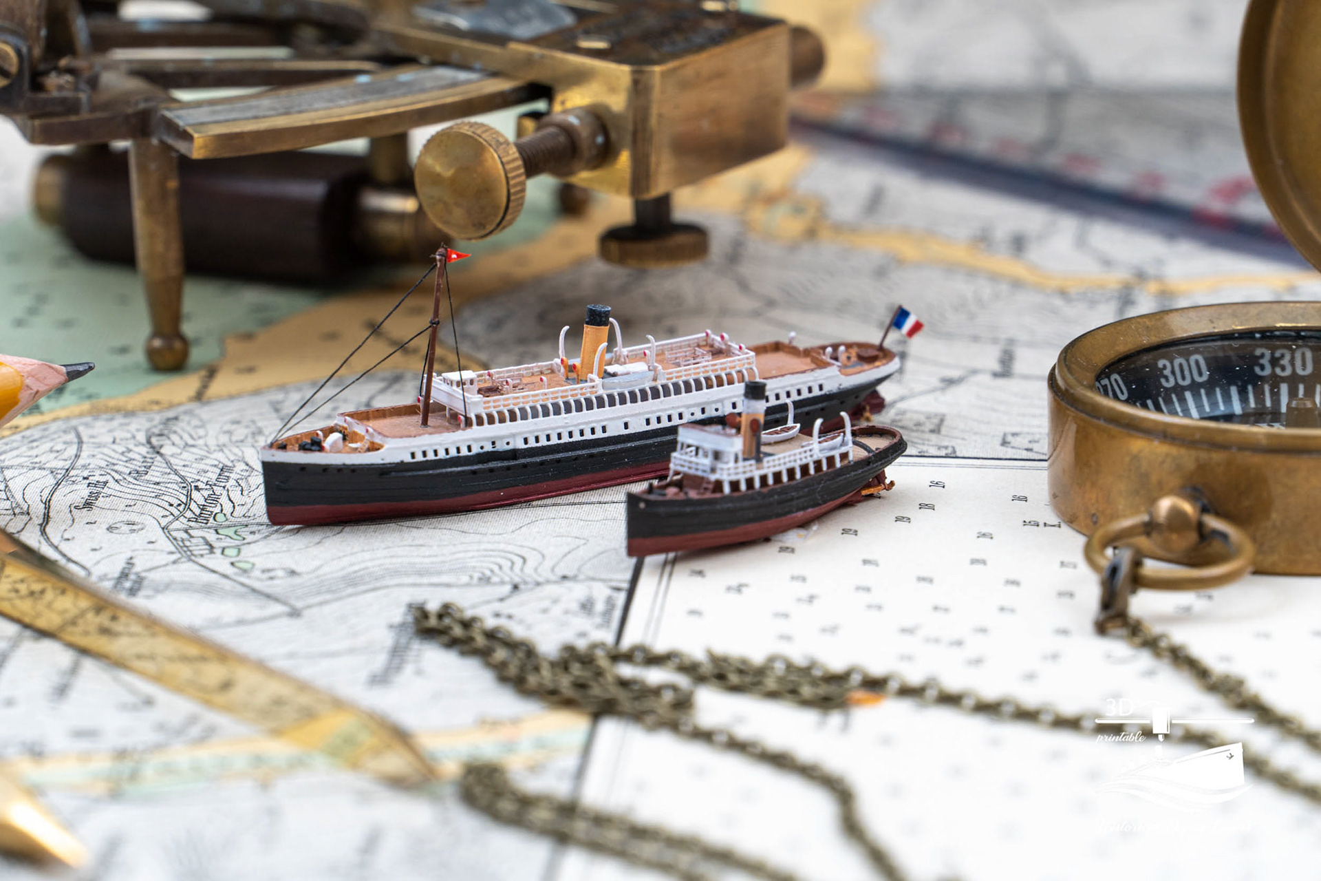 An overview of my 1:1000 3D printed model of historical Ocean Liners