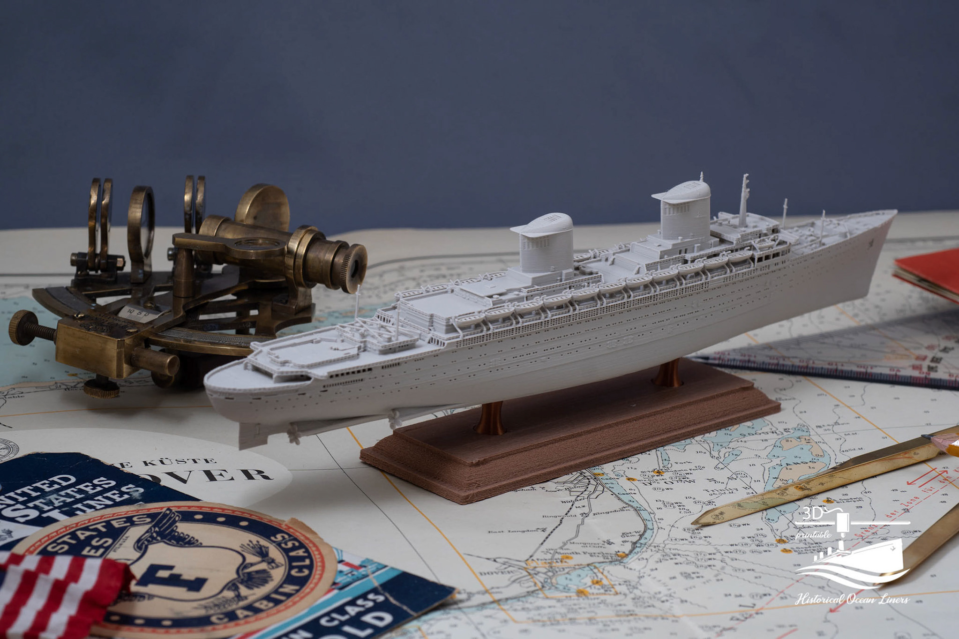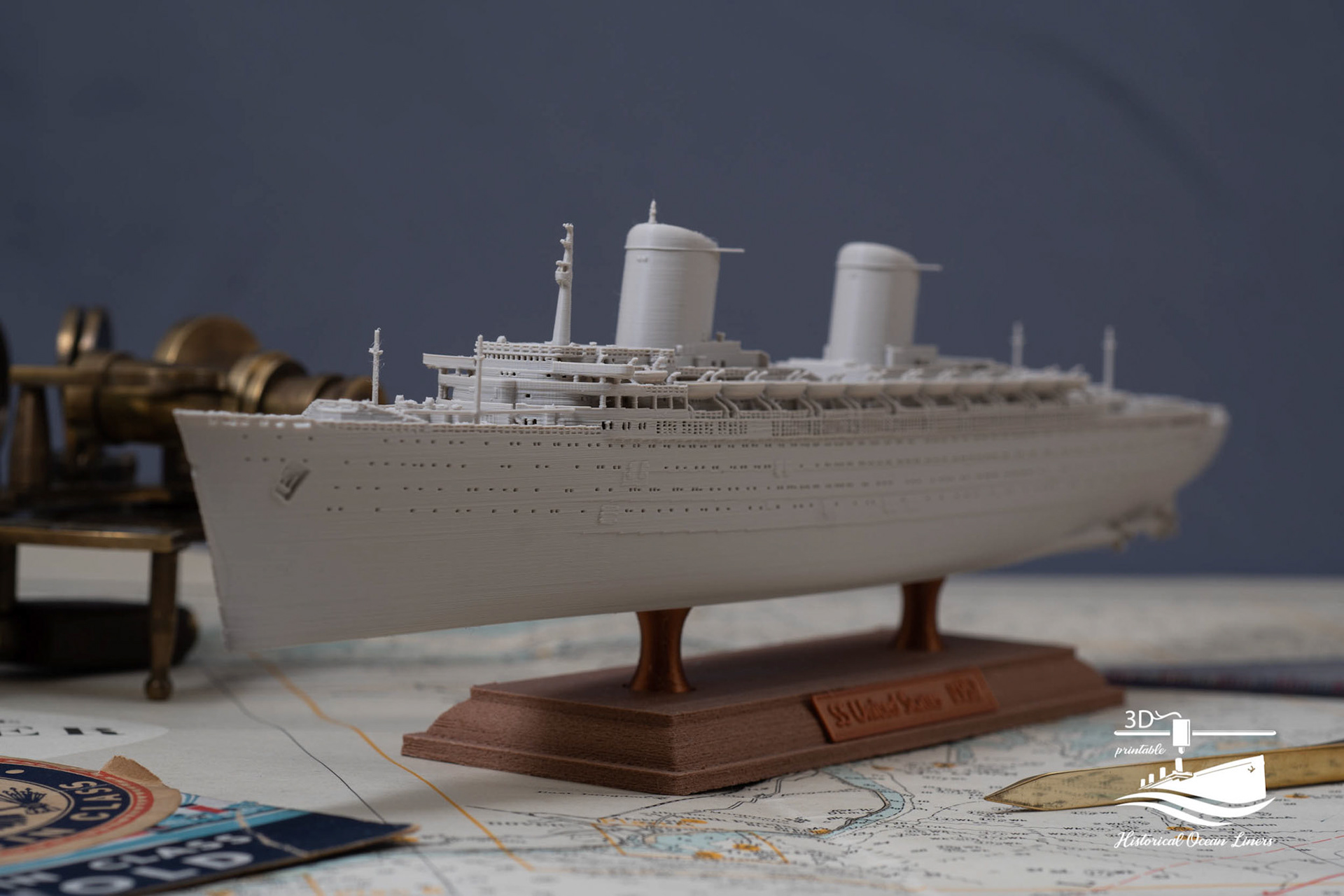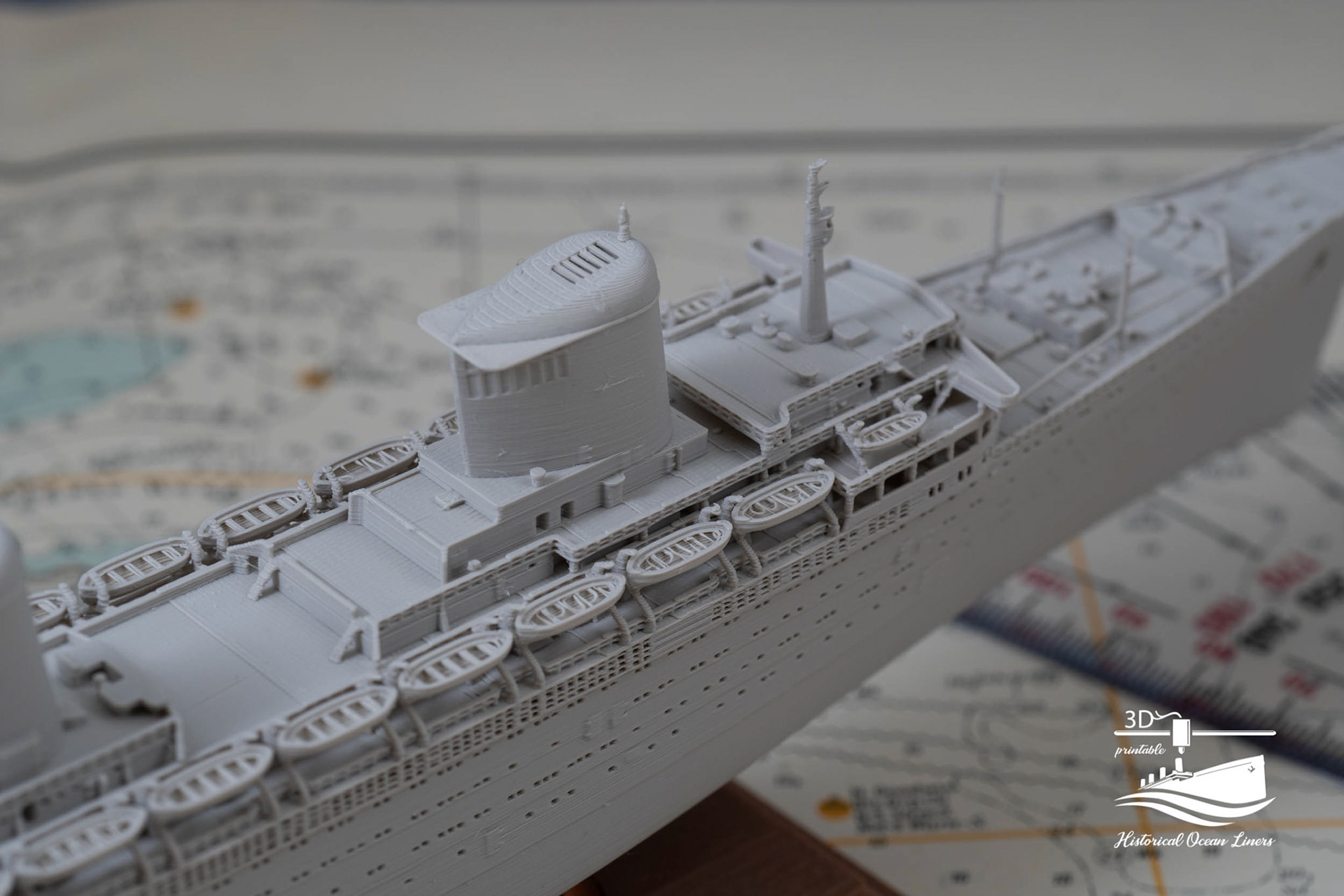 An overview of my 1:1000 3D printed model of historical Ocean Liners