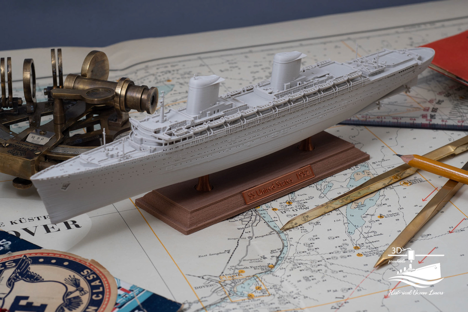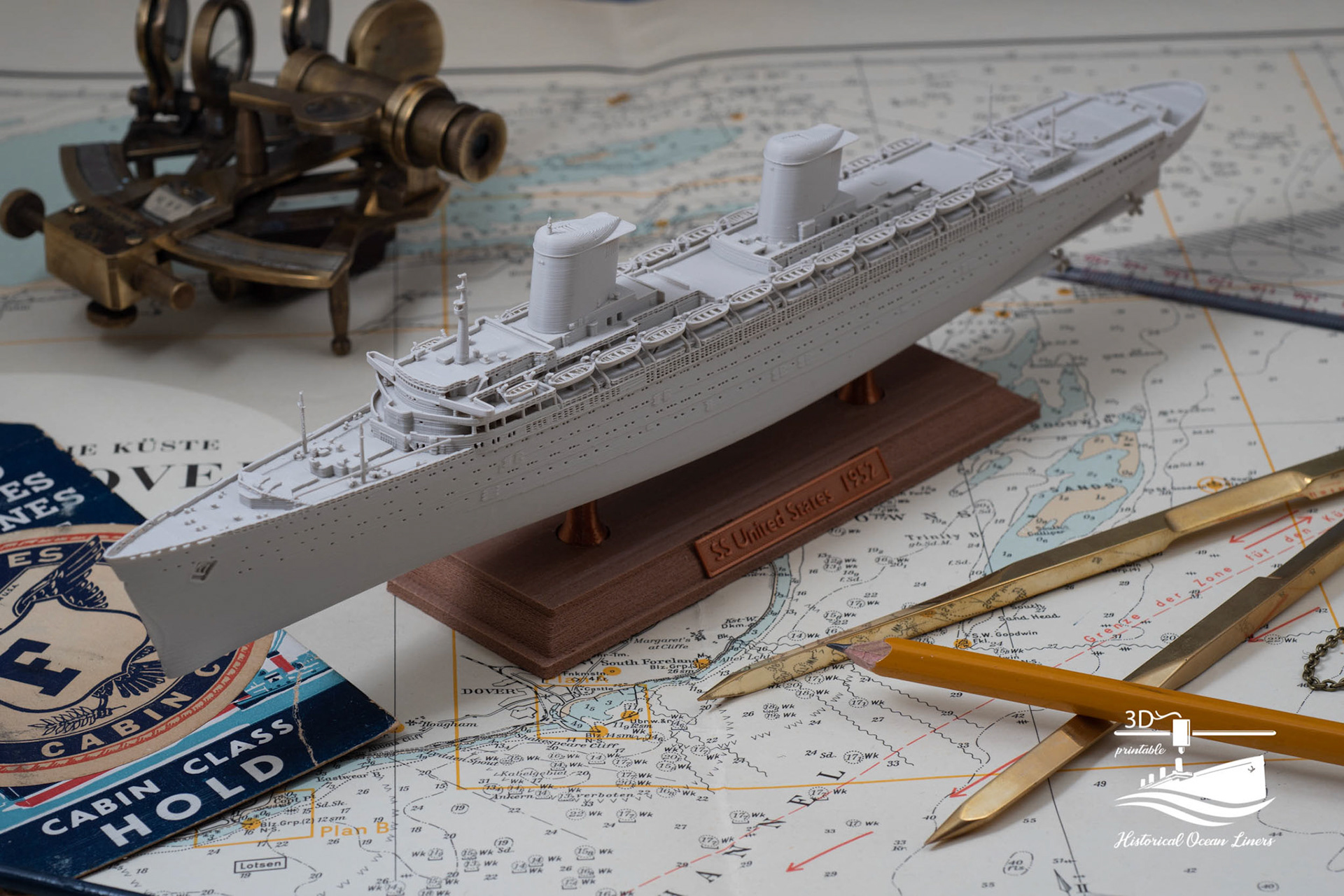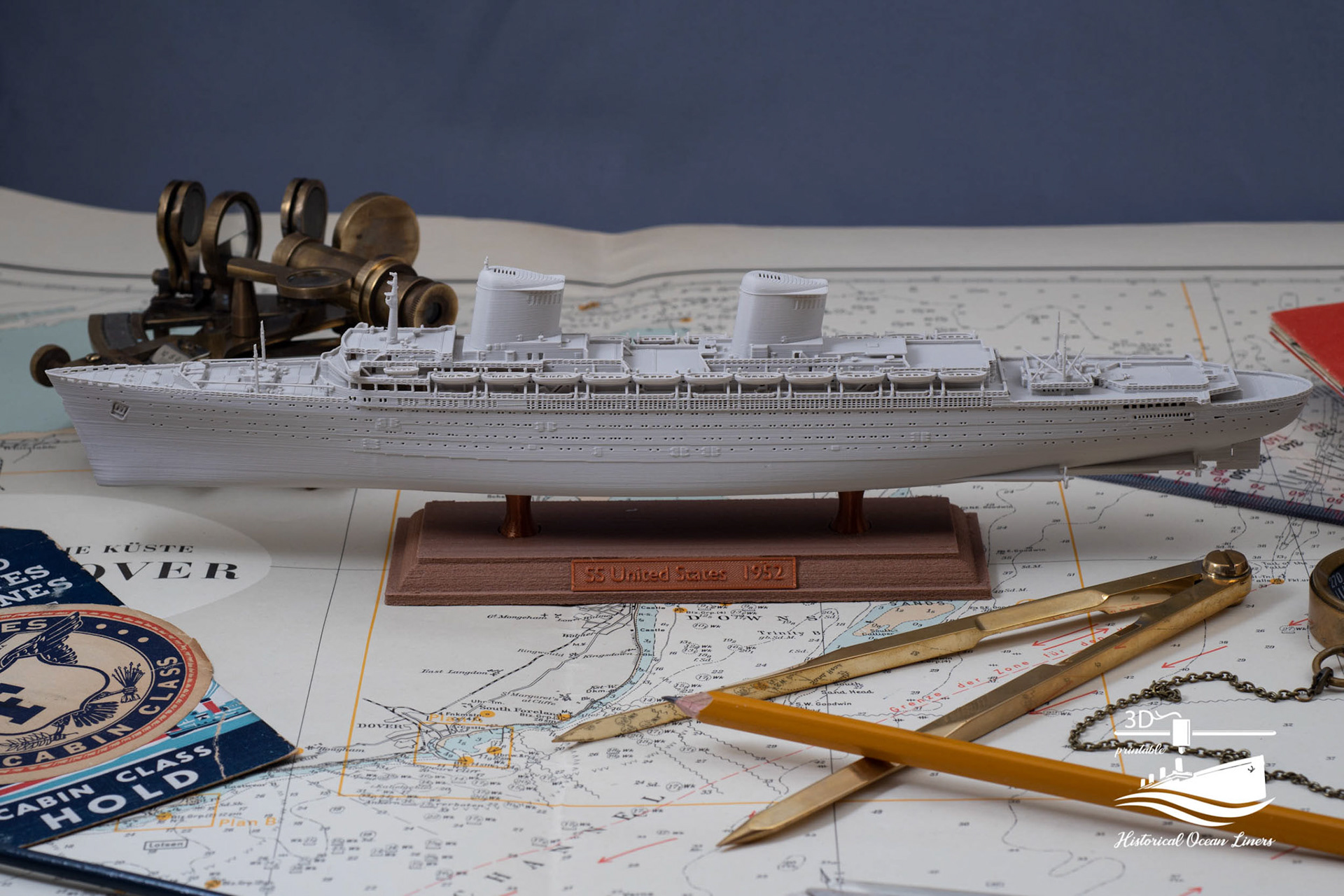 An overview of my 1:1000 3D printed model of historical Ocean Liners